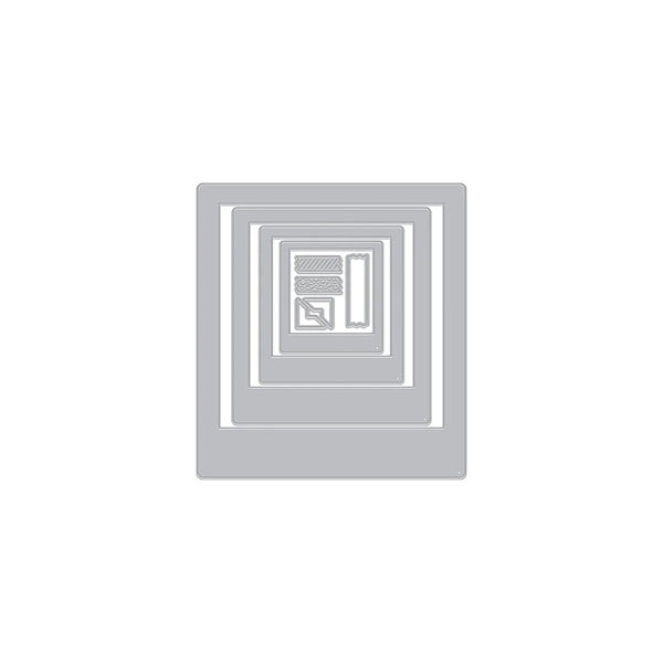 ※ダイを使用するにはエボリューションアドバンスなど専用のダイカットマシンが必要です。ダイは繰り返し使用出来ます。<参考サイズ:(Largest frame)3 1/4×4 3/8インチ (Smallest frame)3/8×1/2インチ 全9ピース入り>