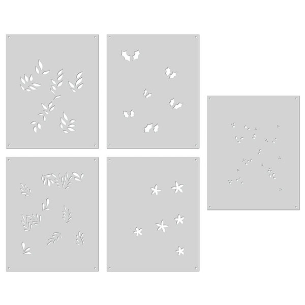 商品説明: 【ヒーローアーツ/Hero Arts】のステンシルです。同ブランドのクリアスタンプ&ダイ『Christmas Foliage Bundle(HRA-SB377)』とご一緒にお使い頂けます。※ステンシルの上からスプレー、インキング、ダウパーインクやミストなどでペーパーに模様をつけるのに使用します。<シートサイズ:5.25×6.5インチ 全5シート入り>