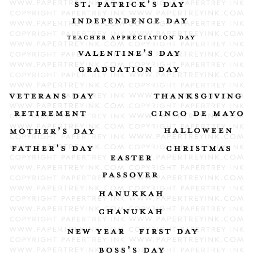 商品説明: 【ペーパートレイインク/papertrey ink】のクリアスタンプです。※クリアスタンプは粘着性のある透明なスタンプでアクリルブロック等(別途販売)に貼って使用します。 <参考サイズ:(文字の高さ)1/8インチ、シートサイズ4x6インチ>