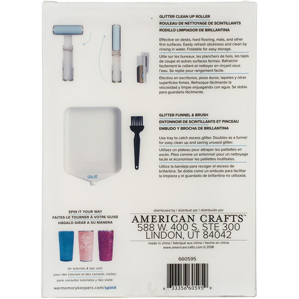 グリッターを使用する際にトレイで受け、余分に落ちたグリッターを漏斗部分からパッケージに直すことができます。ローラーを使い机や床、マットに落ちたグリッターを拾う事ができます。※詳しくは動画をご覧ください。<パッケージサイズ:6×8.25×1.625インチ>